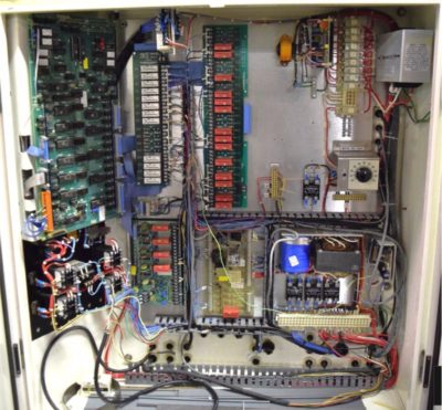 We remove the entire old operator control panel and replace with an Allen-Bradley touch screen. The old integrated circuit chip control was fixed and inflexible. The touch screen can be programed and customized as per your specific needs.